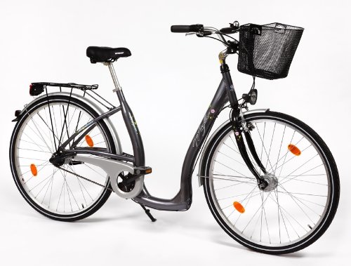 Der tiefe Einstieg dieses gemütlichen Citybikes ermöglicht auch Fahrern eines älteren Jahrganges flexibel zu bleiben. Sicherheit bietet das 2-fach Bremssystem (Rücktritt und Felgenbremse) und die komplette STVZO-Ausstattung mit leichtläufigem Nabendynamo von Shimano. Mit dem Rahmen aus Aluminium und den hochwertig verbauten Komponenten ist der Tiefeinsteiger gerade zu ein Leichtgewicht. Zusätzlichen Komfort bieten Gepäckträger mit Sicherheitsbügel, Kettenschutz und bequemer Sattel. Mit dem winkelverstellbaren Lenkervorbau finden Sie garantiert eine bequeme Sitzposition. Diesen Tiefeinsteiger bekommen Sie bei uns inklusive abnehmbaren Korb.